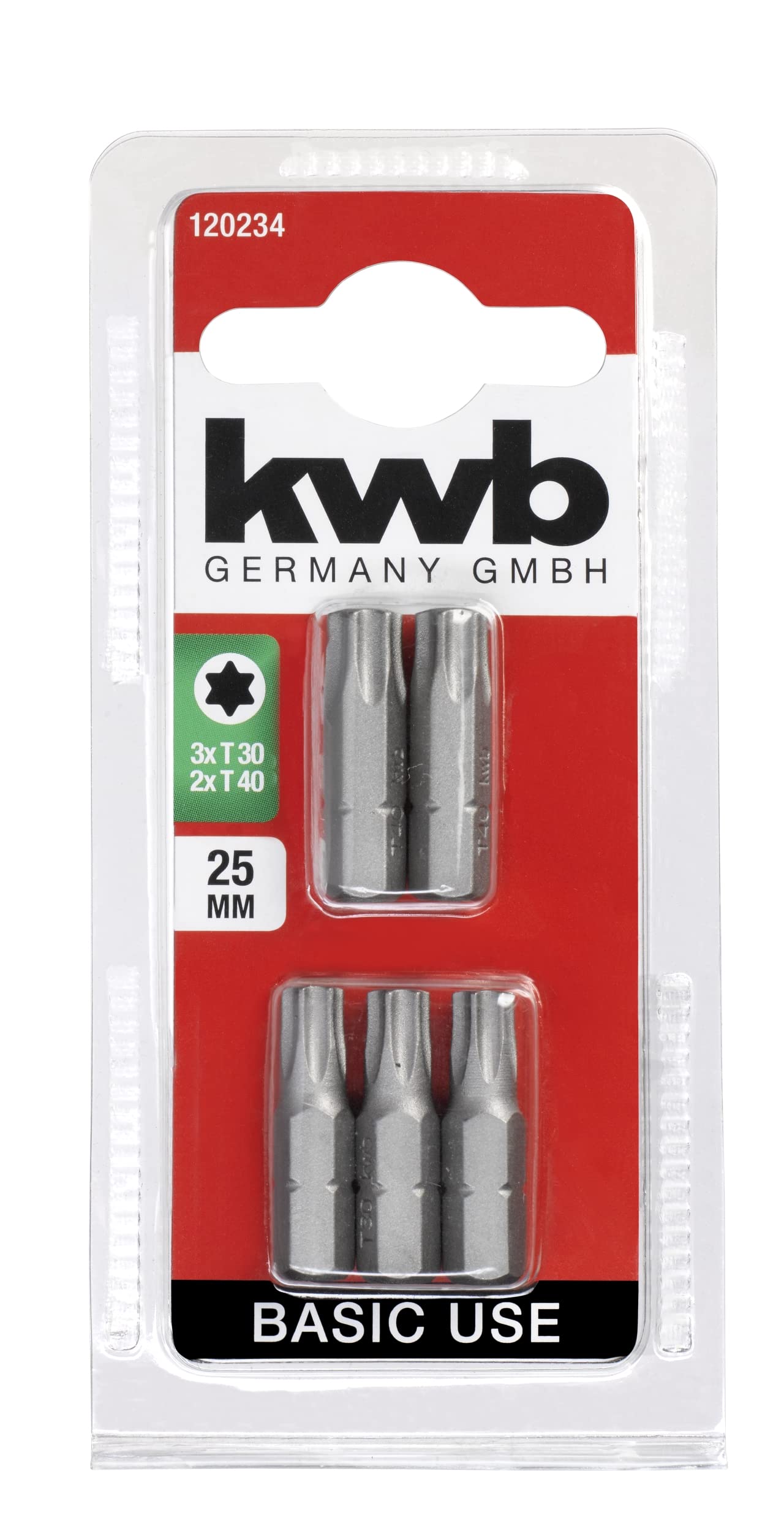 Bitar 25mm, 3xT30 og 2xT40 Basic, 5stk