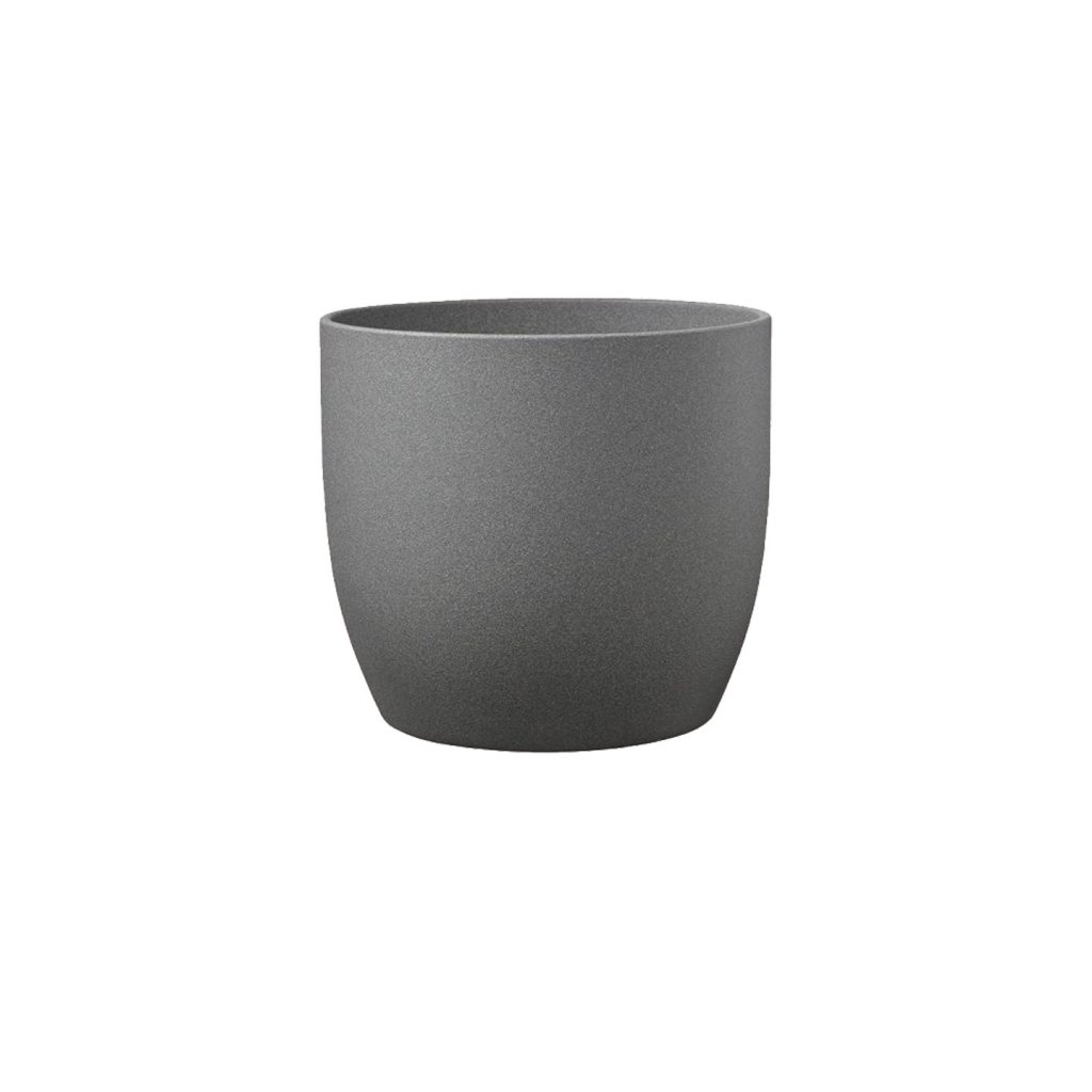 Grár keramikpottur með sandáferð. Fáanlegur í nokkrum stærðum frá 12 – 27 cm.