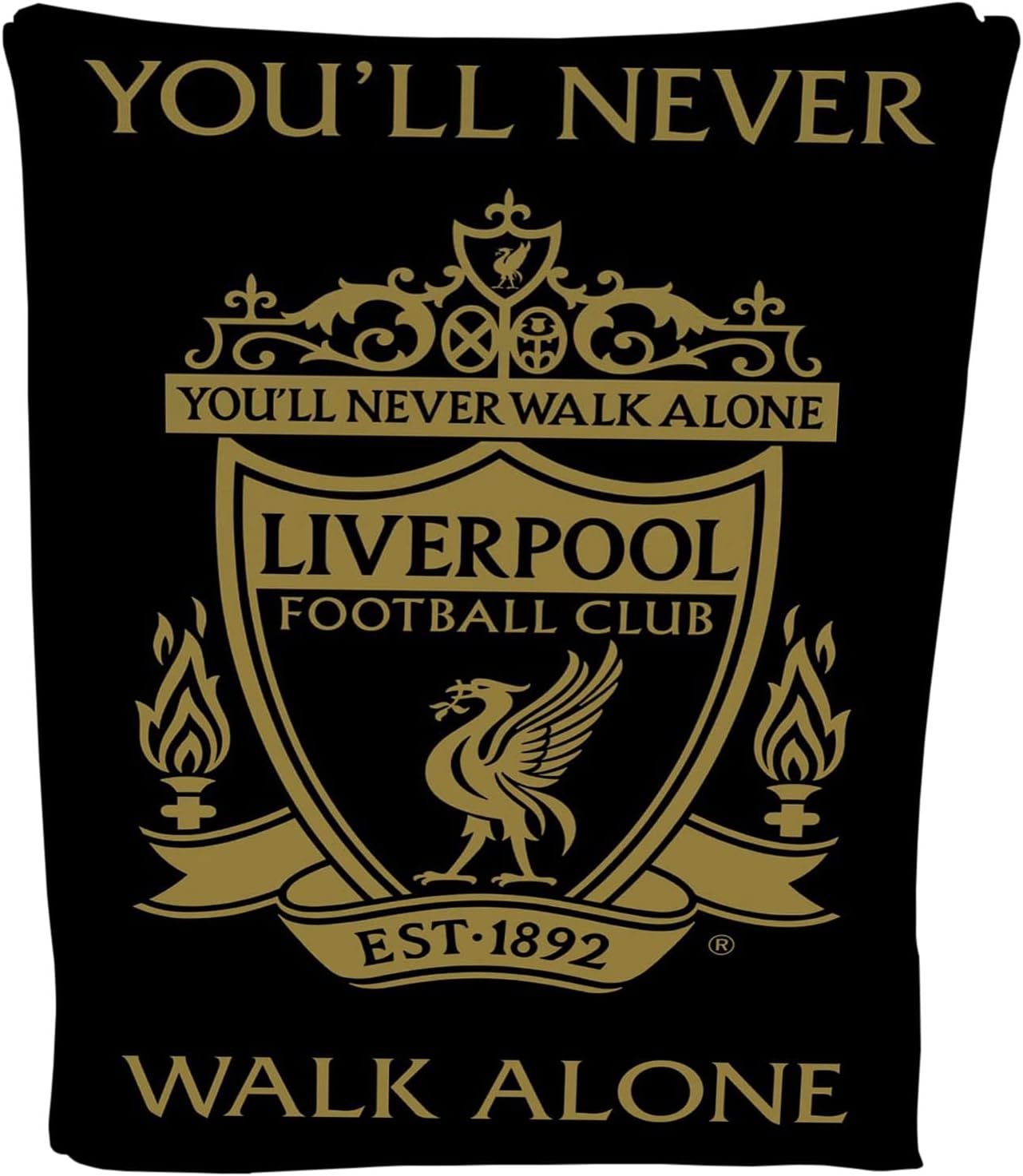 Umvefðu þig hlýju með þessu fallega svarta og gyllta Liverpool FC flísteppi.