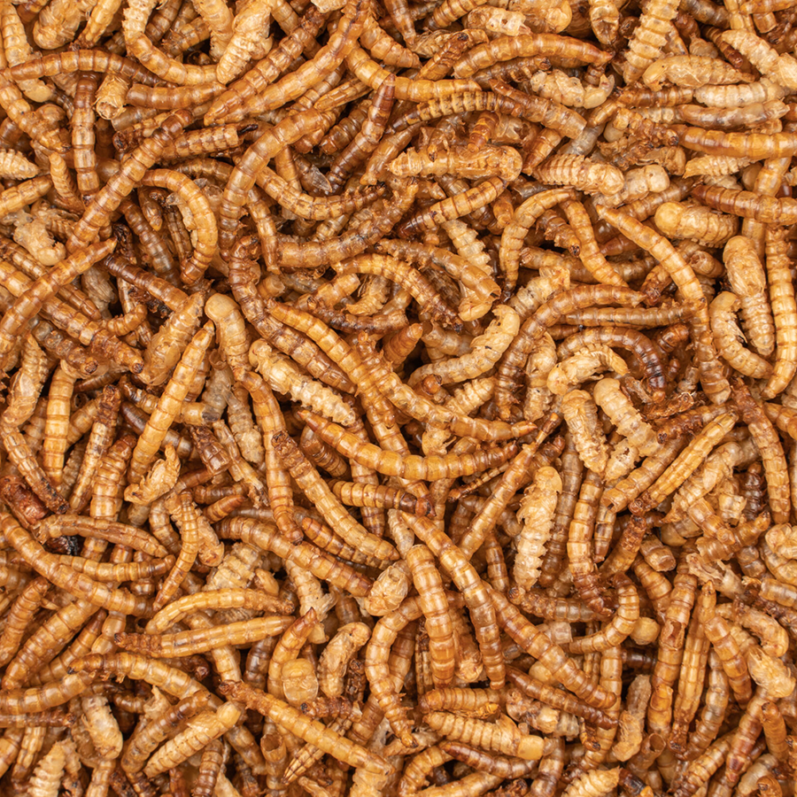 Þurrkaðir mjölormar fyrir smáfugla og hænur, ríkir af vítamínum og próteini. Hægt er að blanda þeim saman við annað smáfuglafóður. Mjölorma má gefa allan ársins hring.