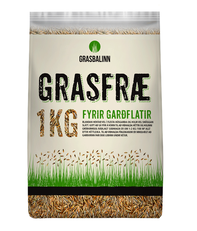 - Notið 1–2 kg á 100 m2 af fræblöndu og 3–4 kg á 100 m2 af Blákorni eða Graskorni /Græði 6