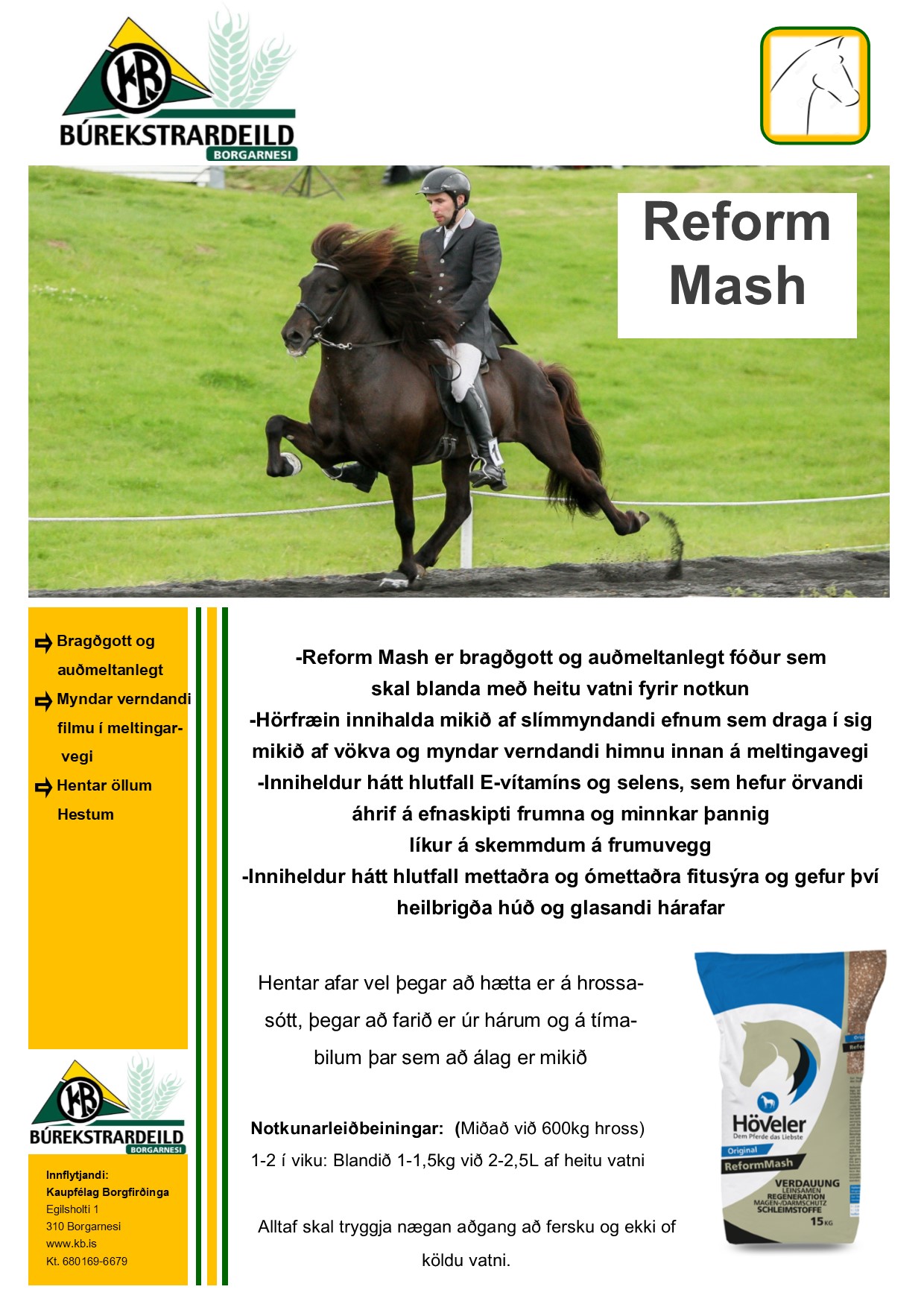 Vöruflokkar: Fóður og bætiefni, Hestar, Húsdýr, Rekstrarvörur