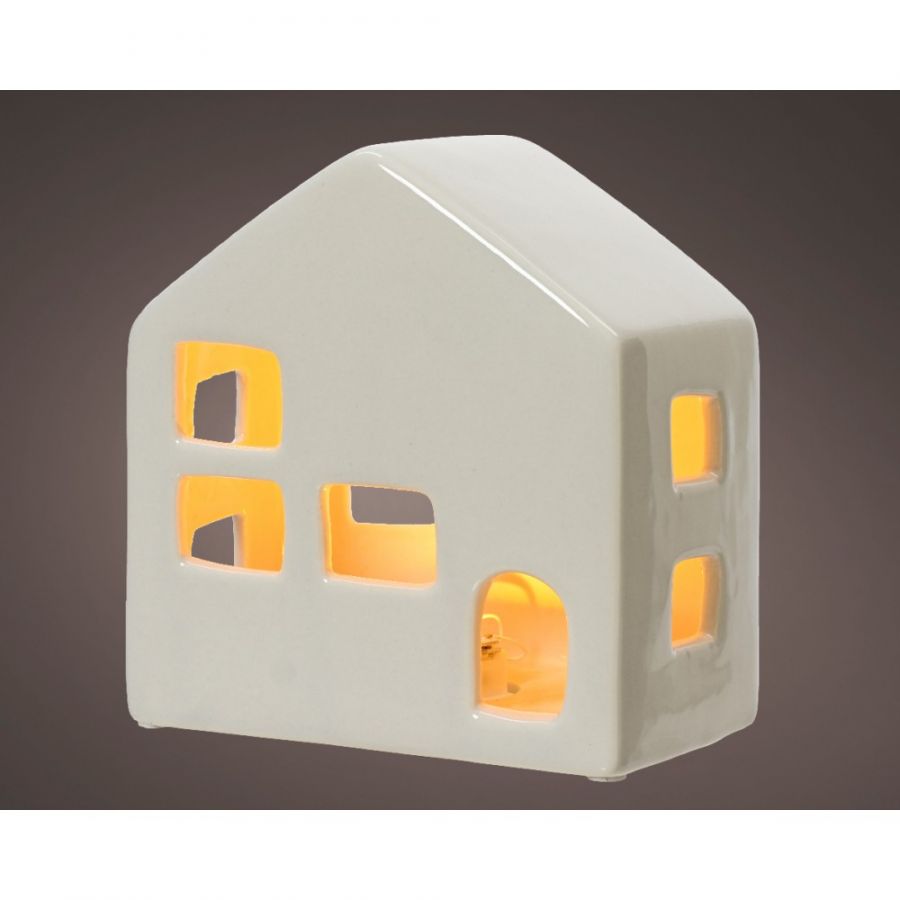 Kertahús, postulín, LED, 8x13cm