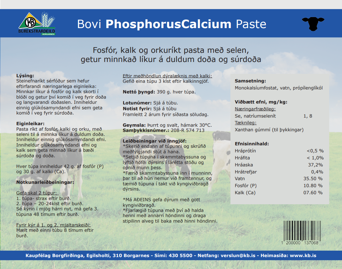 Orkupasta ríkt af kalki, fosfór og seleni, minnkar líkur á langliggjandi kúm