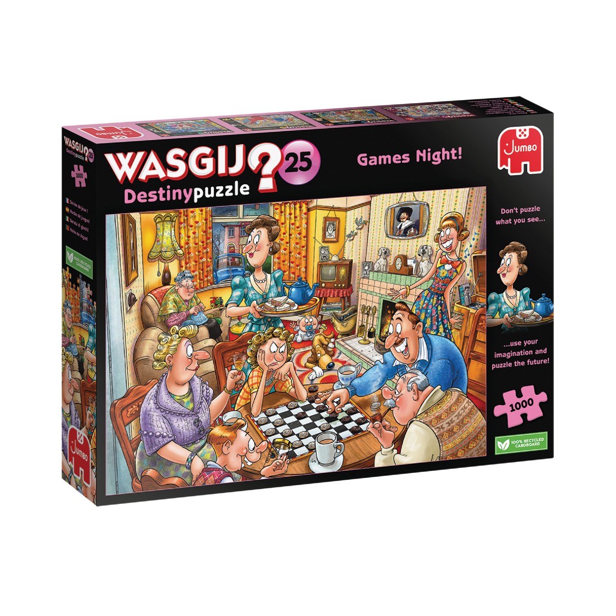 Í gamla daga kom fjölskyldan saman í stofunni og spilaði spil. Útvarpið var í gangi, amma sat og prjónaði og mamma kom með kvöldsnarl. Skyldi hafa tekist að halda í þessa hefð? Hvernig skyldi spilakvöld nútímans líta út? Til að komast að því þarftu að púsla Wasgij Destiny 25.