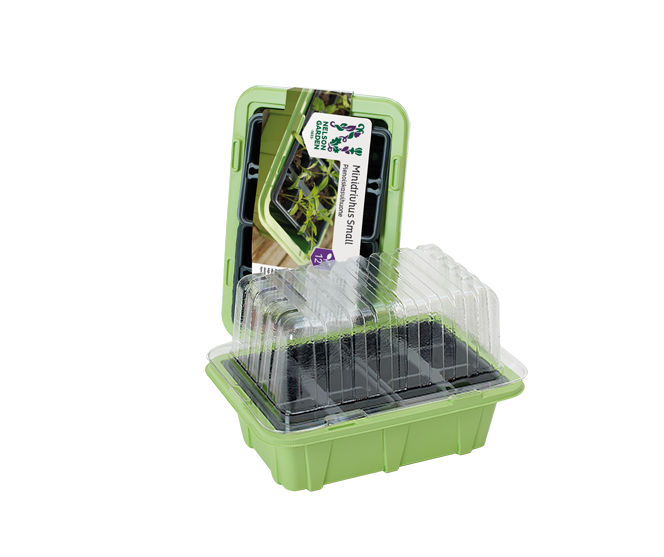 Mini gróðurhús með glæru loki frá Nelson Garden. Gróðurhúsið inniheldur tvo sáðbakka sem hvor er sex hólfa.