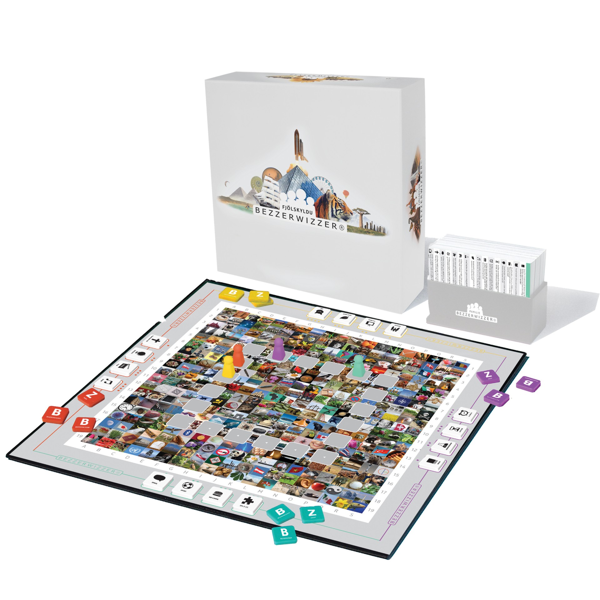 Skemmtilega spurningaspilið fyrir alla fjölskylduna þar sem fjölskyldumeðlimir keppast um að sanna snilli sína í almennum fróðleik í 16 mismunandi spurningaflokkum.