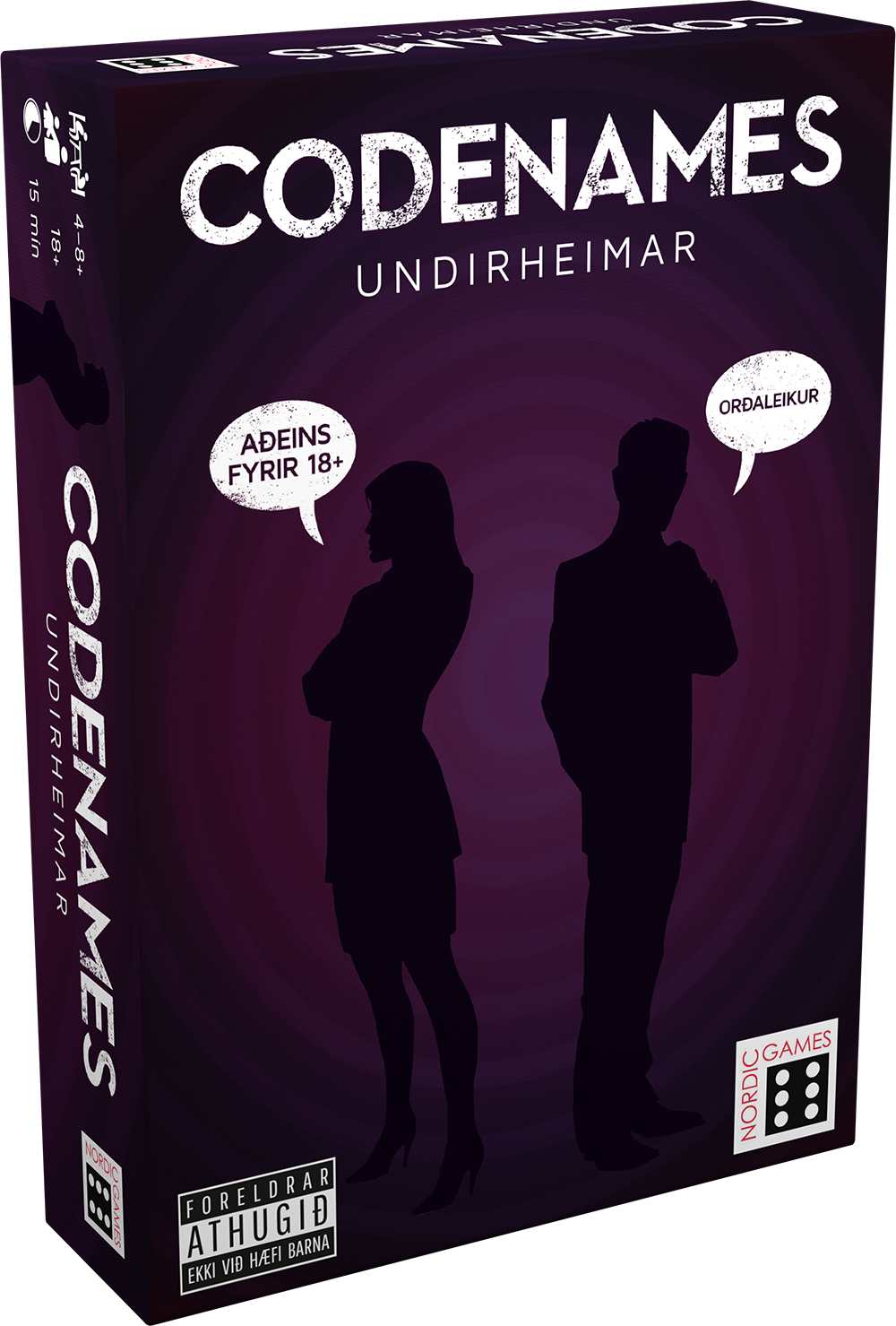 Munurinn er sá að Codenames Undirheimar inniheldur dulnefni sem eru alls ekki við hæfi barna undir 18 ára aldri!