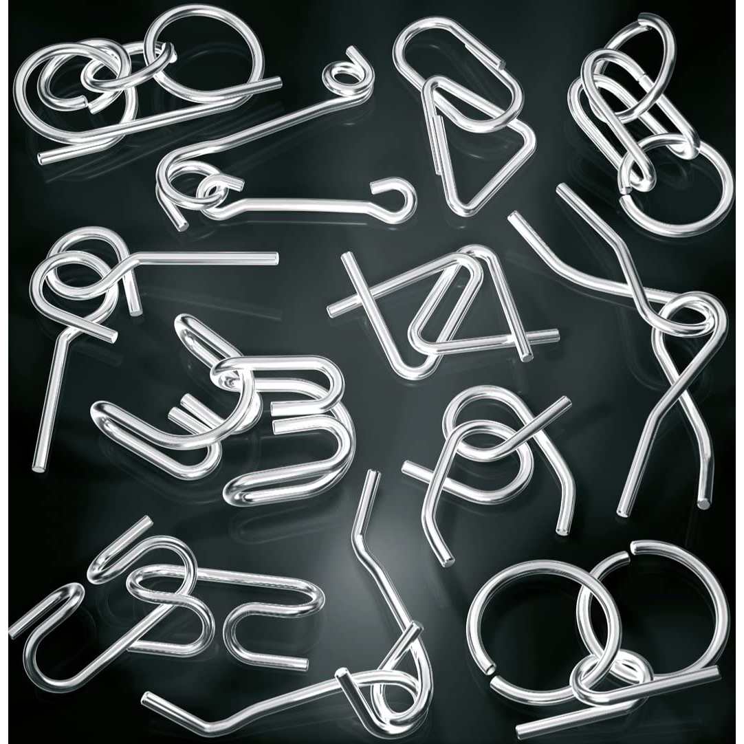 Skemmtilegt þrautaleikfang frá Schmidt fyrir 1-2 leikmenn, 7 ára og eldri. Inniheldur 12 þrautir í formi boginna og samanvafinna málmlengja sem þarf að festa saman og losa í sundur. Ef tekst að leysa 6 af 12 þrautum er leikurinn unninn. Með fylgir lausnahefti. Fæst í blárri álöskju sem hentar vel t.d. á ferðalögum.