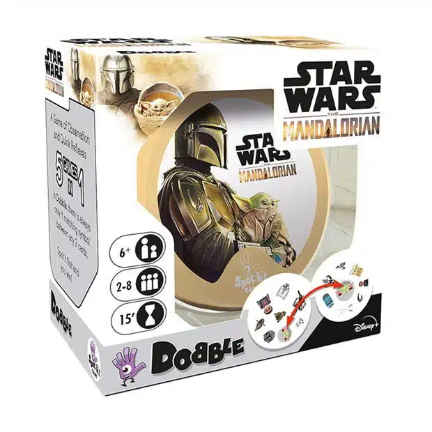 Tvenna Star Wars inniheldur 55 spjöld með ýmsum myndum af persónum og hlutum úr Star Wars The Mandalorian.