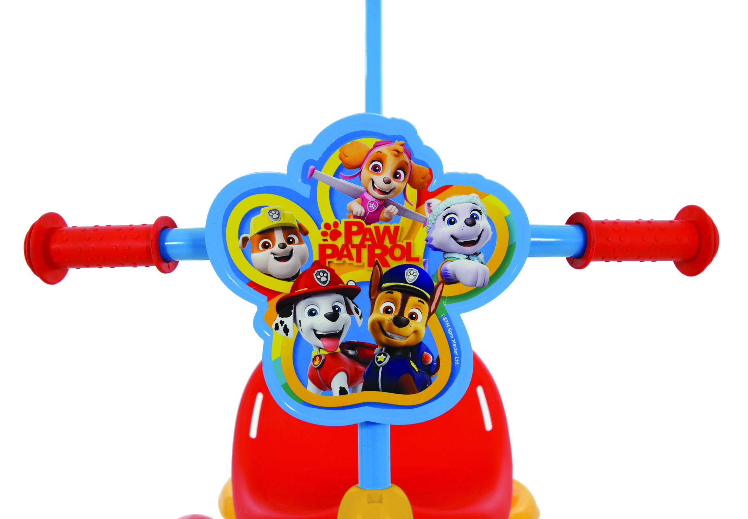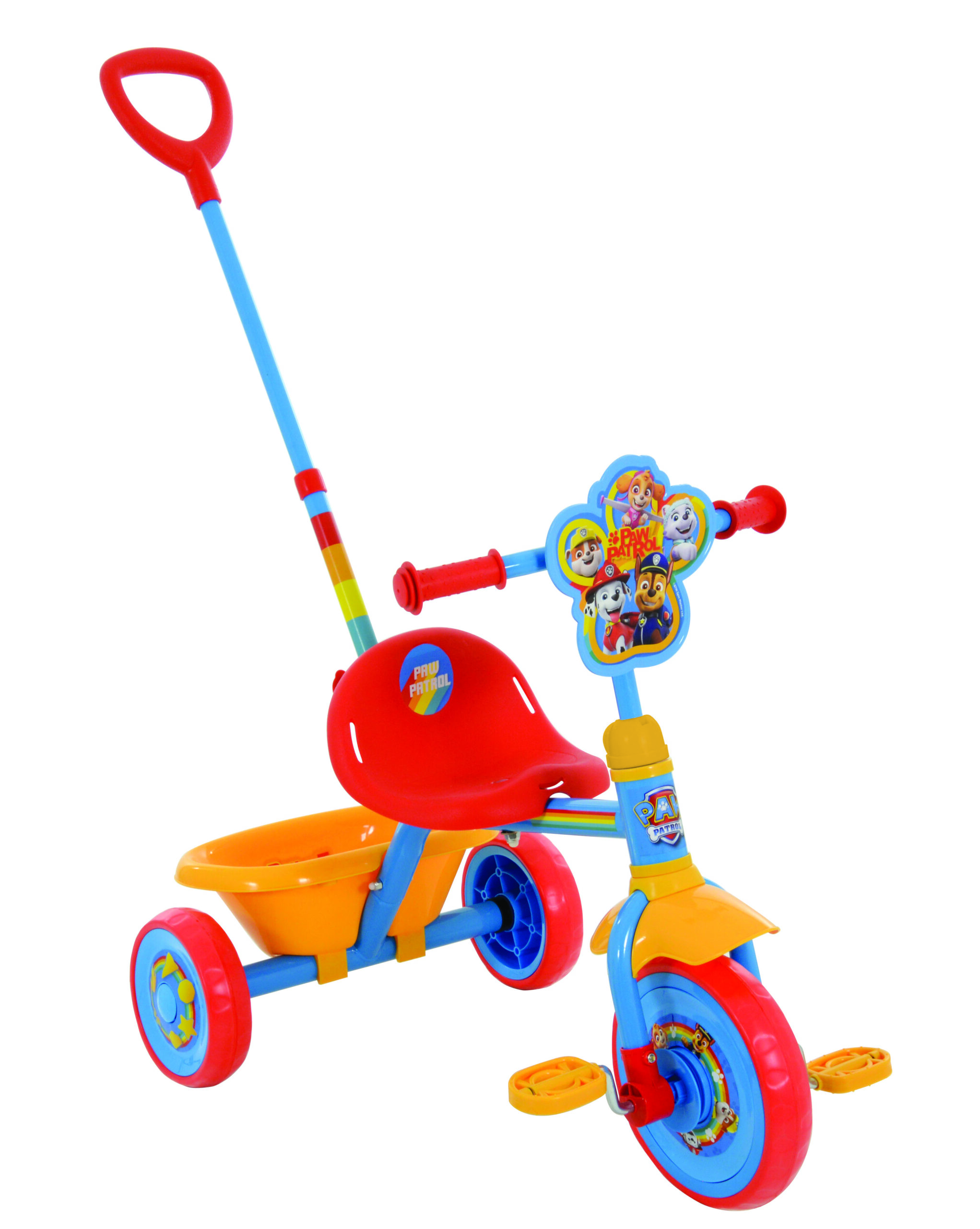 Hvolpasveitar þríhjól með handfangi til að hjálpa barninu að hjóla. Einfalt er að taka handfangið af þegar barnið er tilbúið að hjóla sjálft.