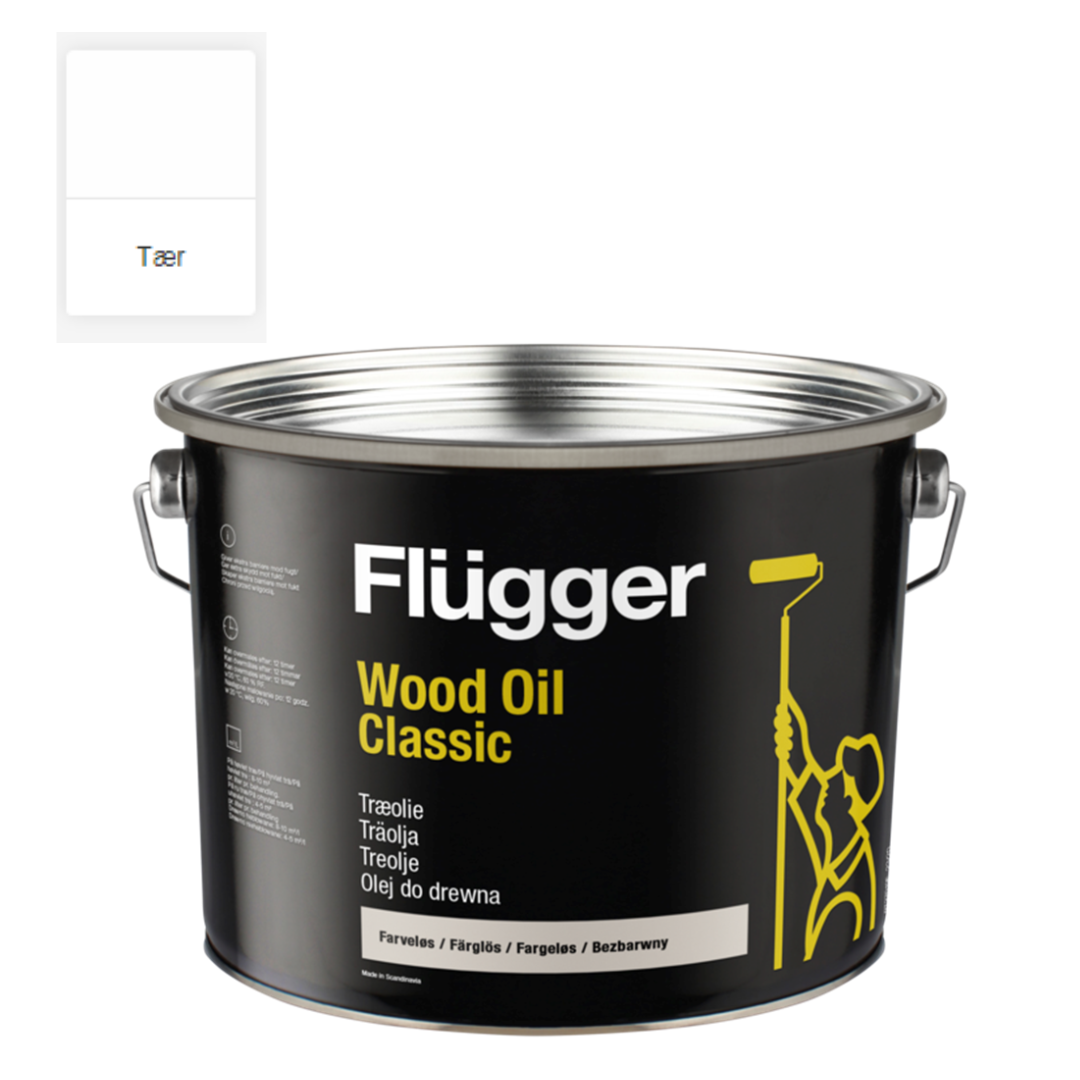 Flügger Wood Oil Classic ver yfirborð viðarins, en dregur um leið fram byggingu viðarins og æðamynstur. Hamlar vexti myglu og sveppagrodurs a yfirbordi lokaumferdar.
